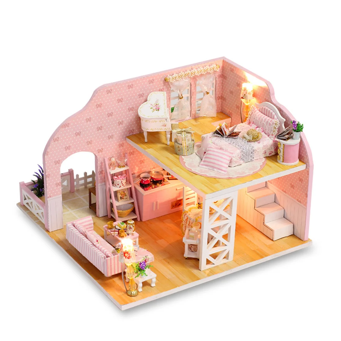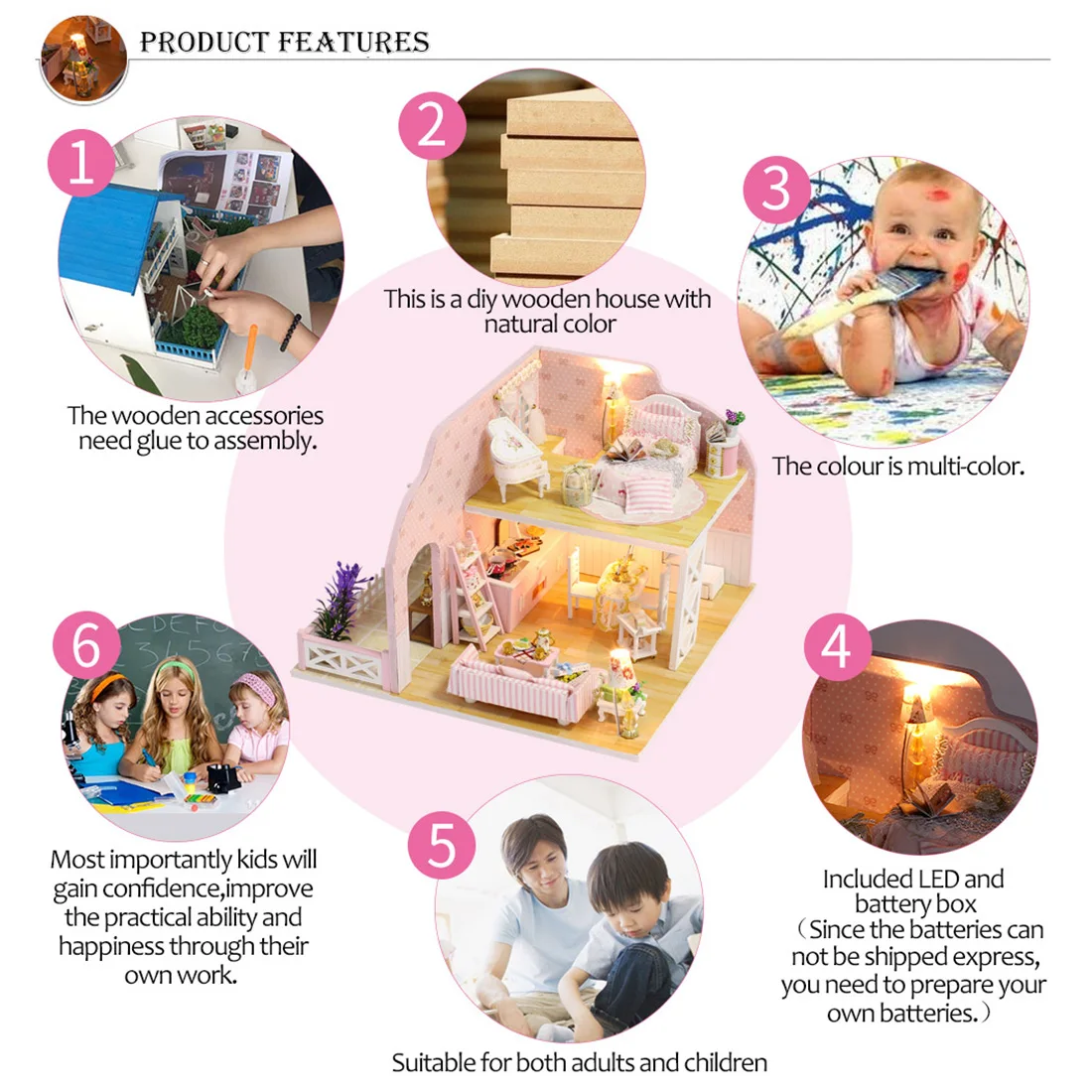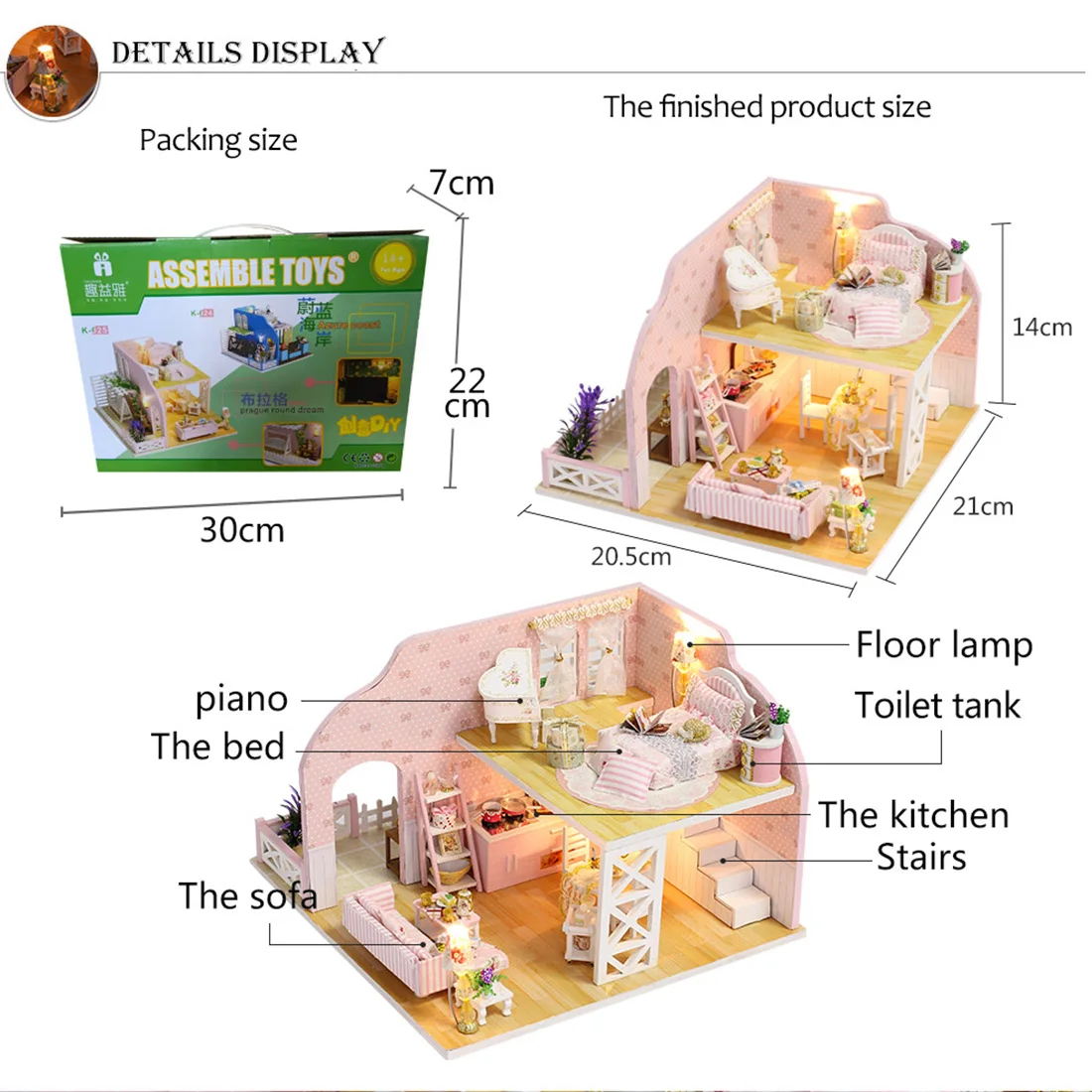 HIGH QUALITY DIY Creative Handmade Theme Wooden Cabin Assembly Building Model Toy Set Toys Gift for Girls Childr