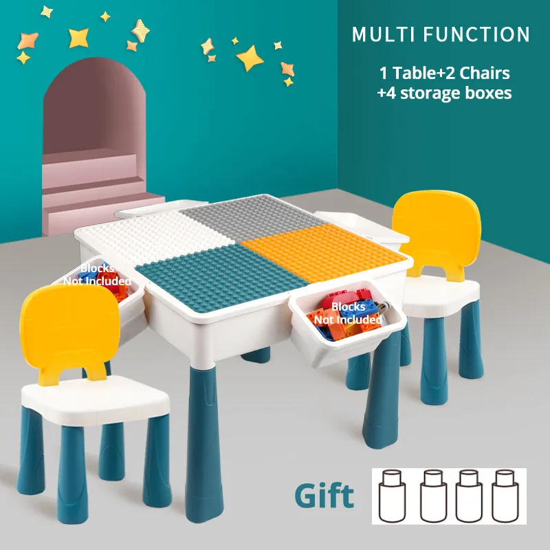 Mutifunction toy Game table+Chair set for legoing duplos Building block with storage box New Year G