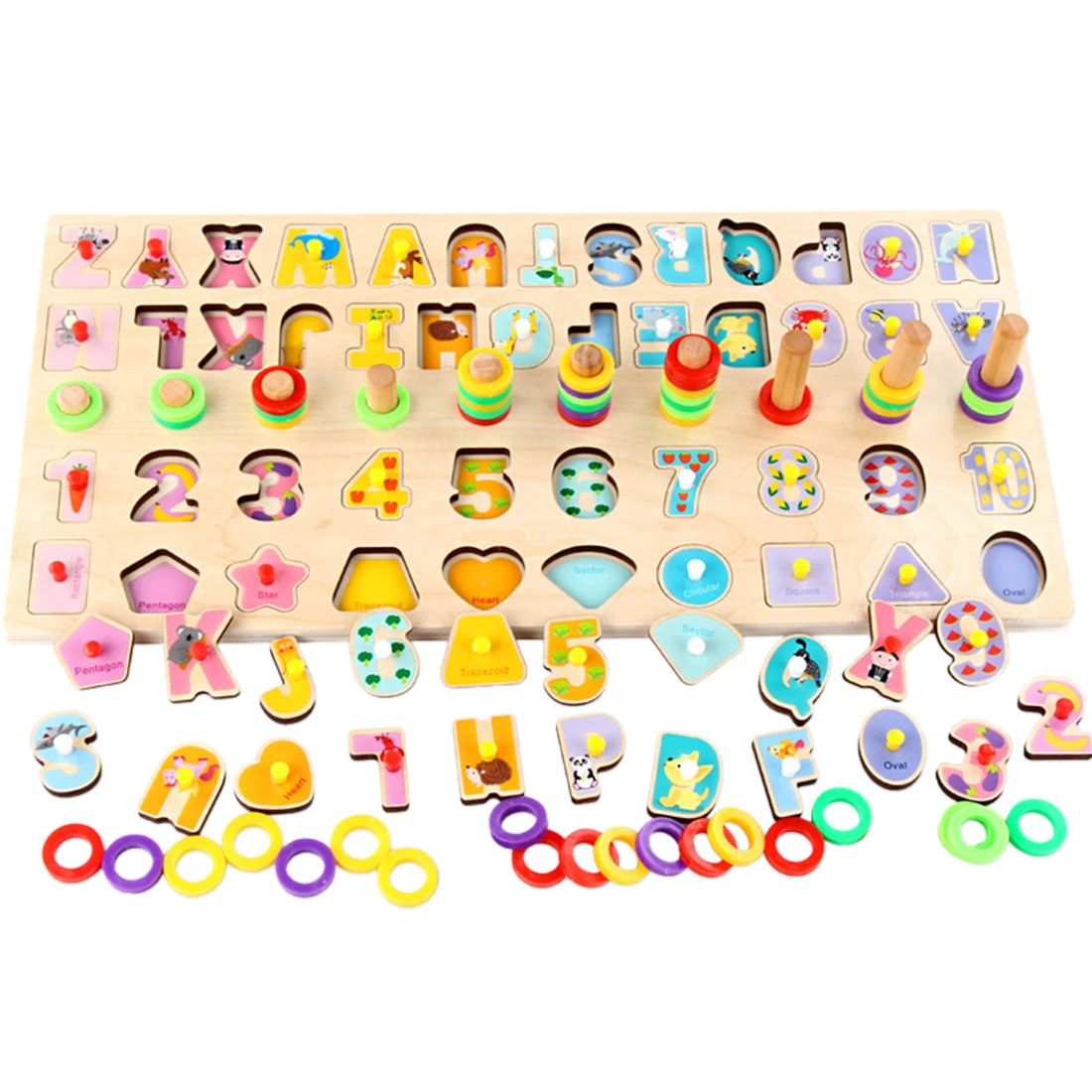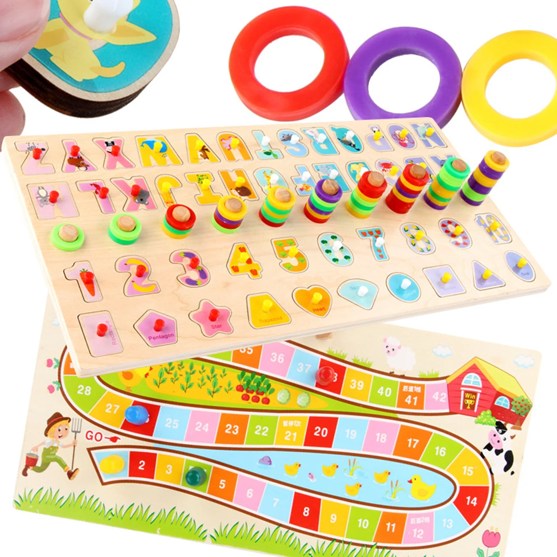 HOT Sale 5-In-1 Logarithmic Board Wooden Baby Jigsaw Toys Digital Building Blocks For Children Gift Parent-C