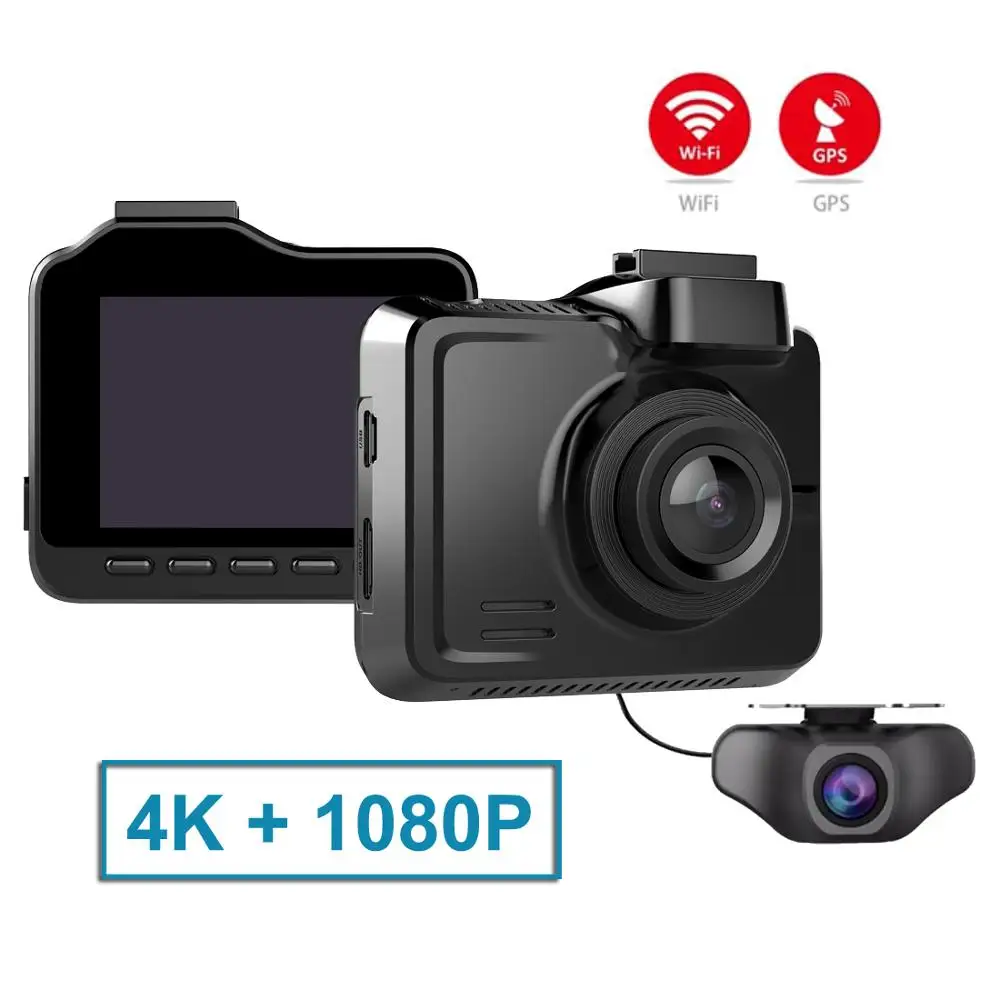 2019 New car dash camera real 4K 3840*2160p 30fps dash cam build in GPS WIFI rear camera full HD 10