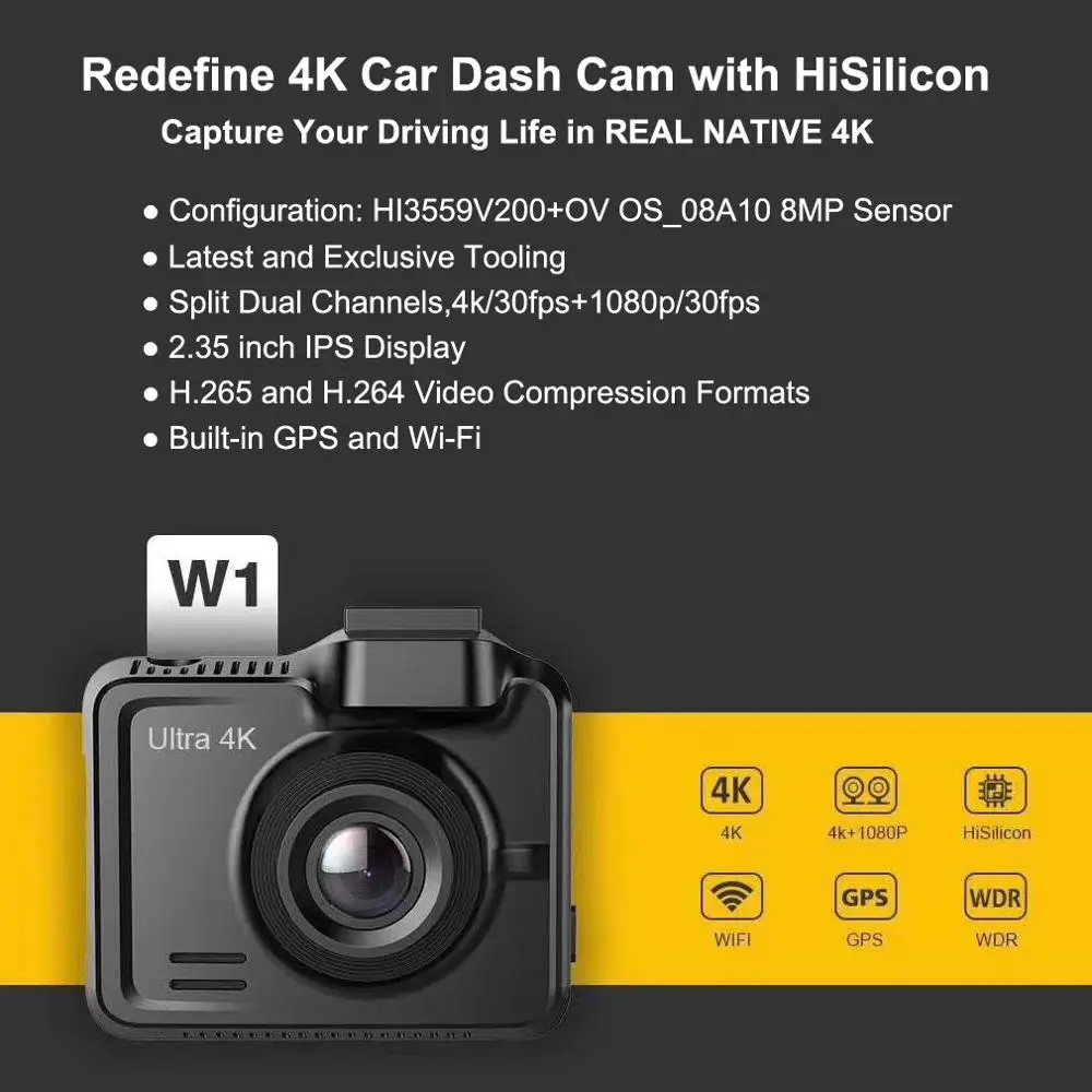 ORIGINAL 2019 New car dash camera real 4K 3840*2160p 30fps dash cam build in GPS WIFI rear camera full HD 10