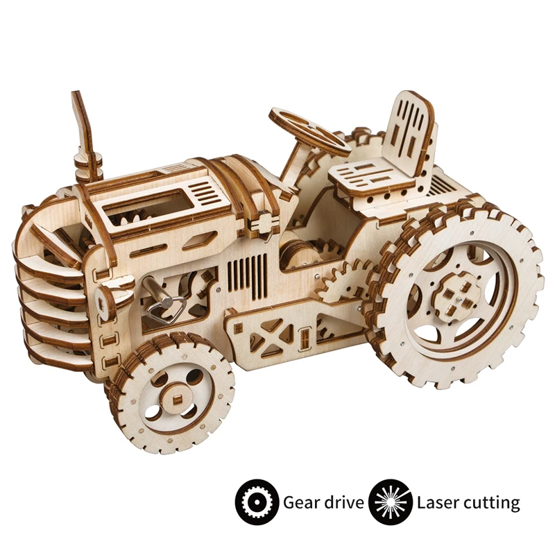 Robotime DIY Movable Mechanical Model Building Kits by Clockwork Wooden Toys Gifts Tractor LK401 fo